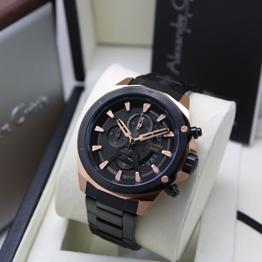 Brand : Alexandre Christie Grade : Original Case Material : Stainless Steel Case Diameter : 4.4 cm Movement : Quartz Display Type : Analog Feature : Water Resistant 5 ATM Chronograph, Tanggal Active Kelengkapan: Box Original Manual Book Garansi Garansi Resmi 1 Tahun