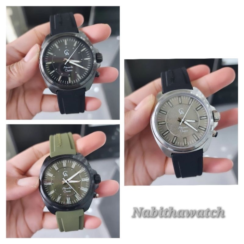 Case Material : All Stainless Steel Strap Material : Rubber Case Diameter : 4,5 cm Movement : Quartz Display Type : Analog LED light Water Resistant Original Garansi Resmi Alexandre Christie 1 Tahun Include Box Dan Buku Garansi Resmi