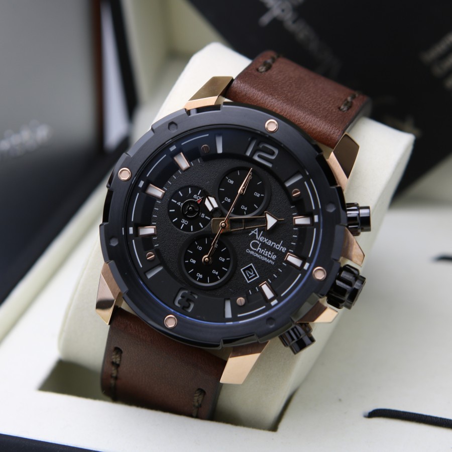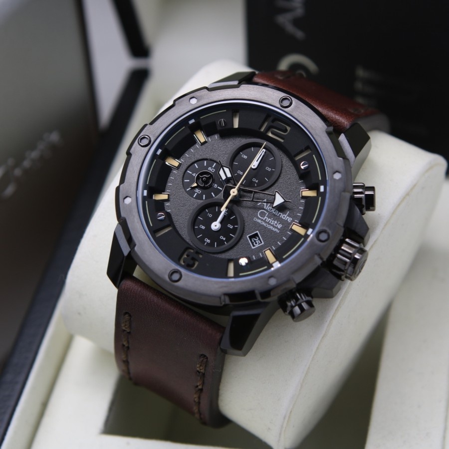 Brand: Alexandre Christie Grade: Original Gender: Man Watch Diameter: 4.5 cm Mesin: Japan Quartz Movement Case: Stainless Steel Strap: Genuine Leather Fitur: Tanggal Aktif, Chronograph Aktif Water Resistant 5 ATM Kelengkapan: Box Original Manual Book Garansi Resmi Internasional 1 Tahun FREE BATERAI ORIGINAL