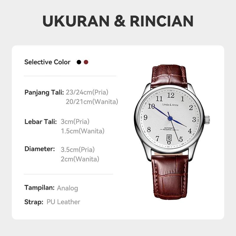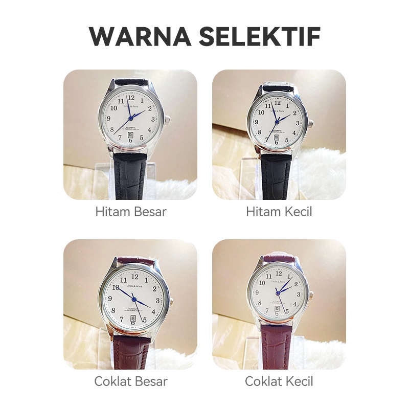 Model Number: Linda&Anne_61-6 Gender : Pria Berat:40gr Strap : Pu Leather Tampilan : Analog Fitur : Tahan Air