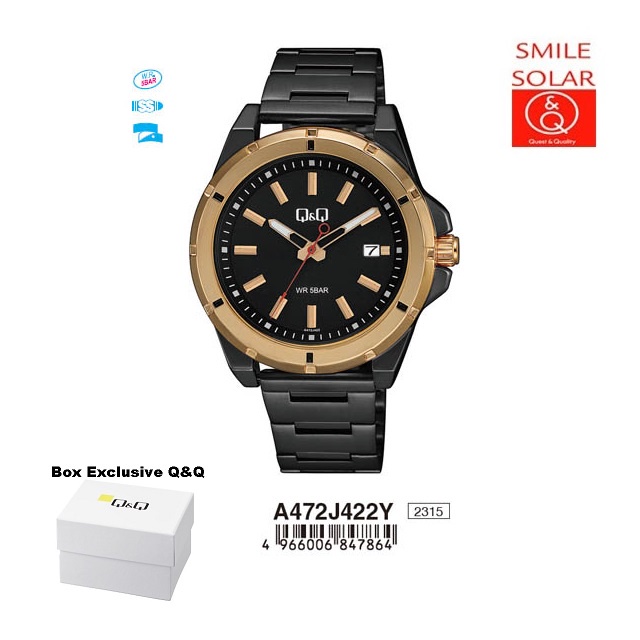 Q&Q Original Strap Rantai Hitam Ring Jam Warna Gold Fitur tanggal Diameter Total 4.3 cm (Diameter di ukur menyamping) Water Resist 50 m Garansi 12 Bulan Include Box Include kartu garansi mesin 1 tahun
