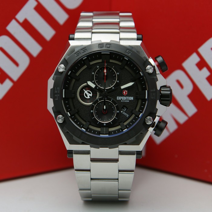 Brand: EXPEDITION FREE BATERAI ORIGINAL Grade: Original Gender: MAN Watch Mesin: Japan Quartz Movement Diameter 4.8 cm All Stainless Steel Cronograph Active Kaca Mineral Glass Water Resistant 5 ATM Kelengkapan: Box Original Manual Book Garansi Resmi 1 Tahun