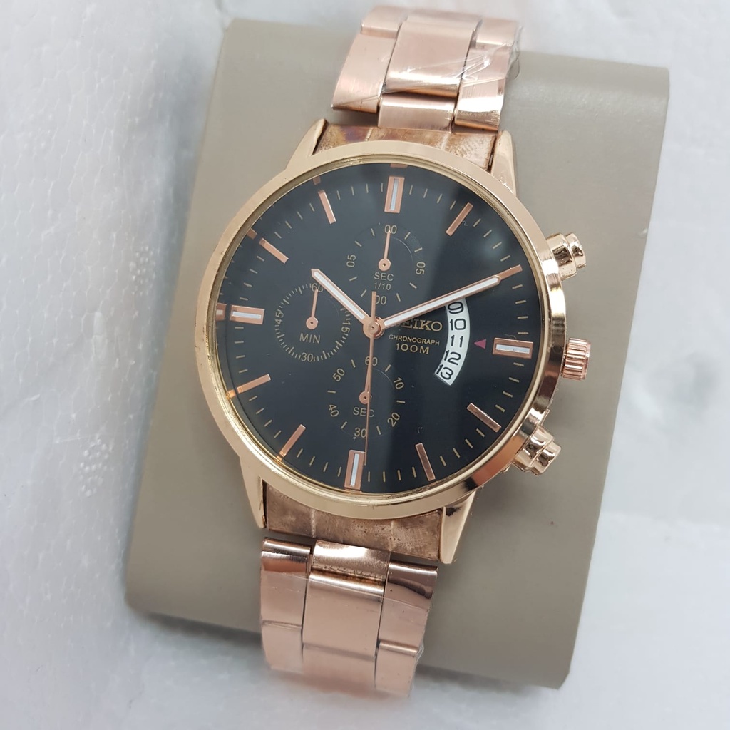 Detail Jam Tangan Pria Fashion Seiko L4350G Tali Rantai Tanggal Aktif Free Box & Baterai Cadangan