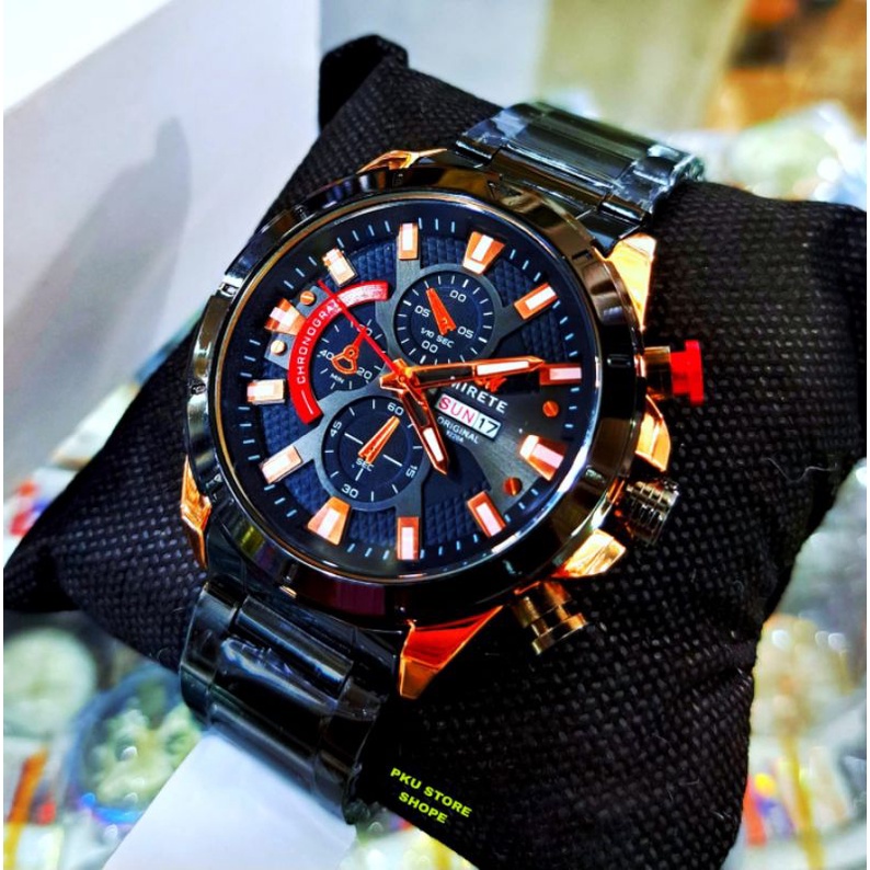 Jam Tangan Pria Mirete Sporty Original Import Day Date Aktif Strap Rantai Stainliss Tahan Air || Jam Tangan Pria Model Simple Elegan Mewah Kekinian Bayar Di Rumah
