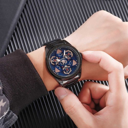 Detail Jam Tangan Pria SKMEI 1678 Luxury Watch Men Quartz Stainless Steel 360° Rotating Gear Hollow