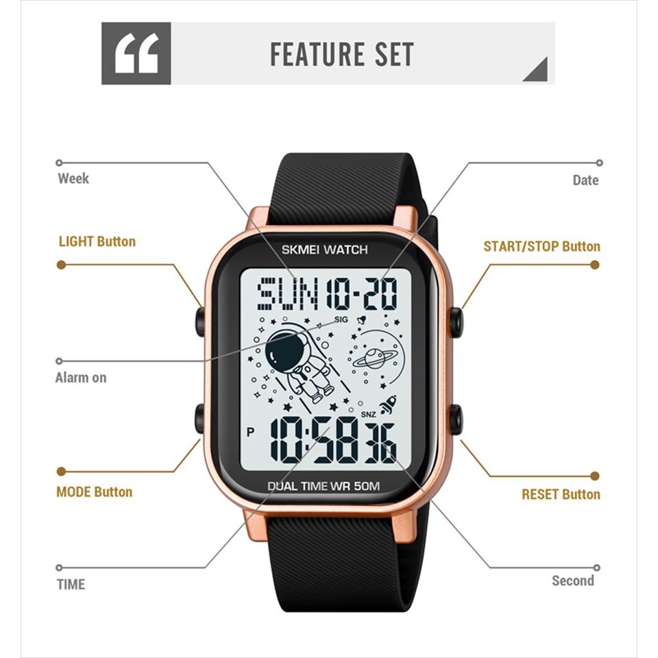 Detail Jam Tangan Pria SKMEI Digital 1971 Astronot rubber Original water resist 5 atm