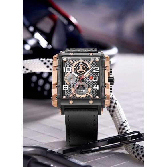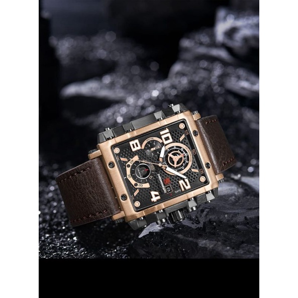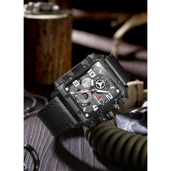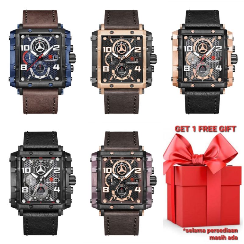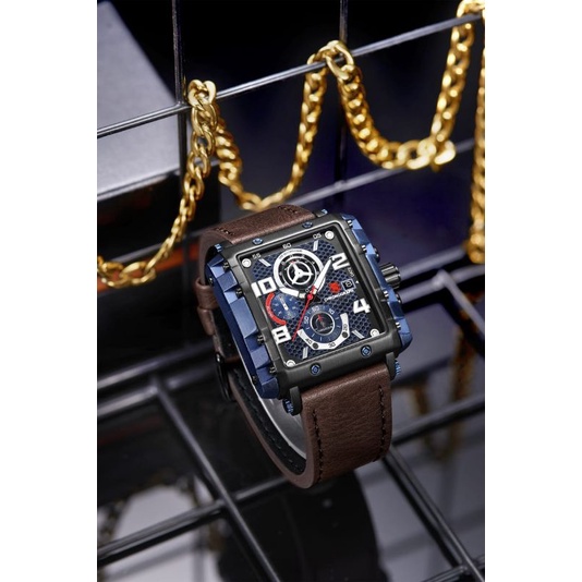 Strap : Leather Diameter : 44.5x43.5 mm Fitur : analog and date Chronograph : Stopwatch Water resistant (bisa dipakai untuk berenang, namun tidak boleh dioperasikan saat di dalam air) ** FREE BOX & PAPER BAG