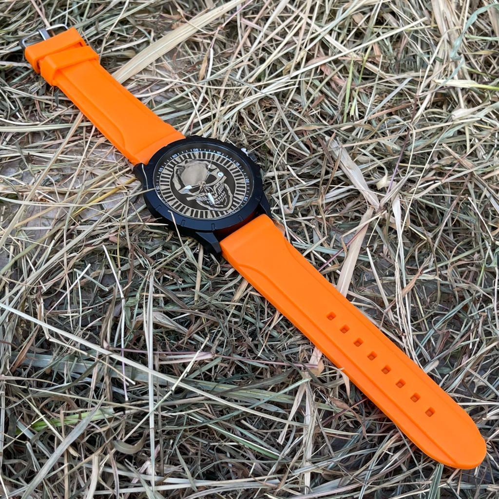 Detail JAM TANGAN PRIA TENGKORAK STRAP RUBBER TGL AKTIF G-5734