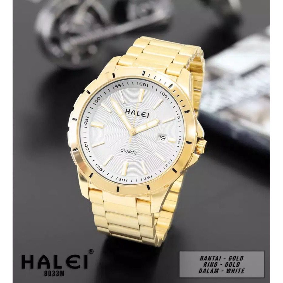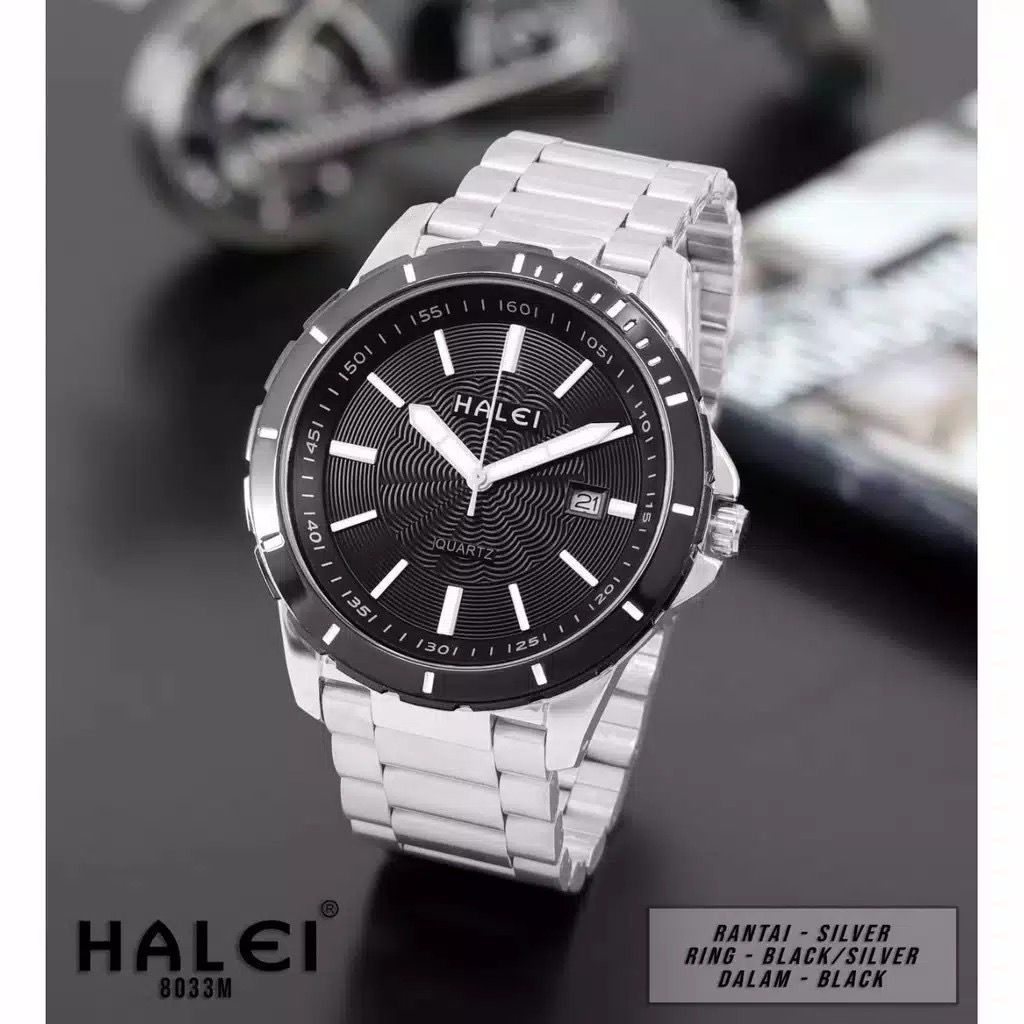 DESKRIPSI PRODUK : *Brand : Halei *Kode : 8033 *Bahan : Rantai Stainless *Jenis Jam : Analog *Mesin : Original Japan *Tanggal : Aktif *Gender : Pria *Ukuran Pria : 4 ,3 Cm *Garansi Resmi : 1 Tahun *Water : 3ATM