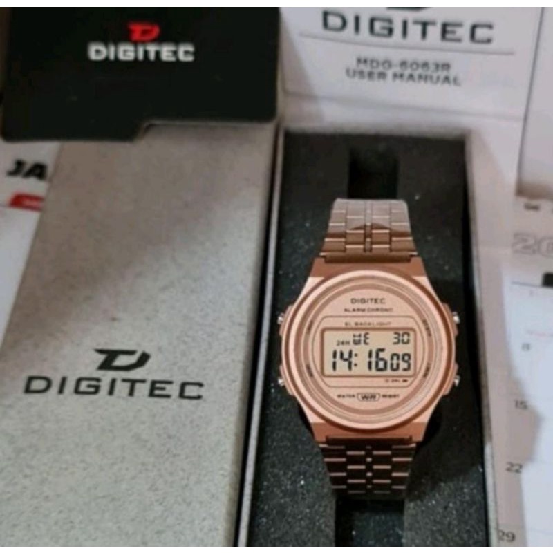 Type: DG 6065 R Mesin: Digital Tenaga: Baterai Diameter : 36 mm Bahan Strap: Stainless Steel Water Resist (Cuci Tangan & Hujan ) Gender: Wanita . Functions (Fungsi & Fitur) : Time: Jam/ Menit/ Detik (AM/PM or 24-Hour Display) Calendar: Month / Date/ Day (Bulan / Tanggal / Hari) Alarm: Jam & Menit Stopwatch : Jam, Menit, Detik (1/100 sec)