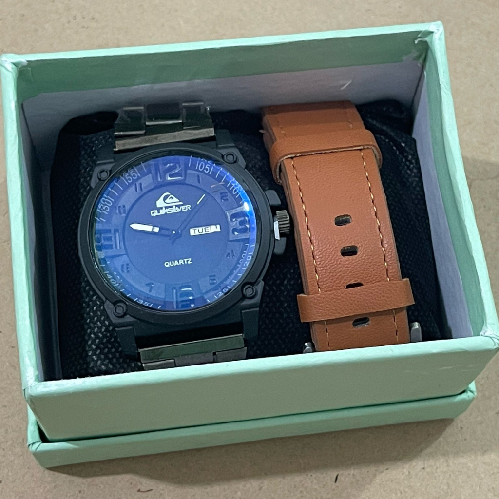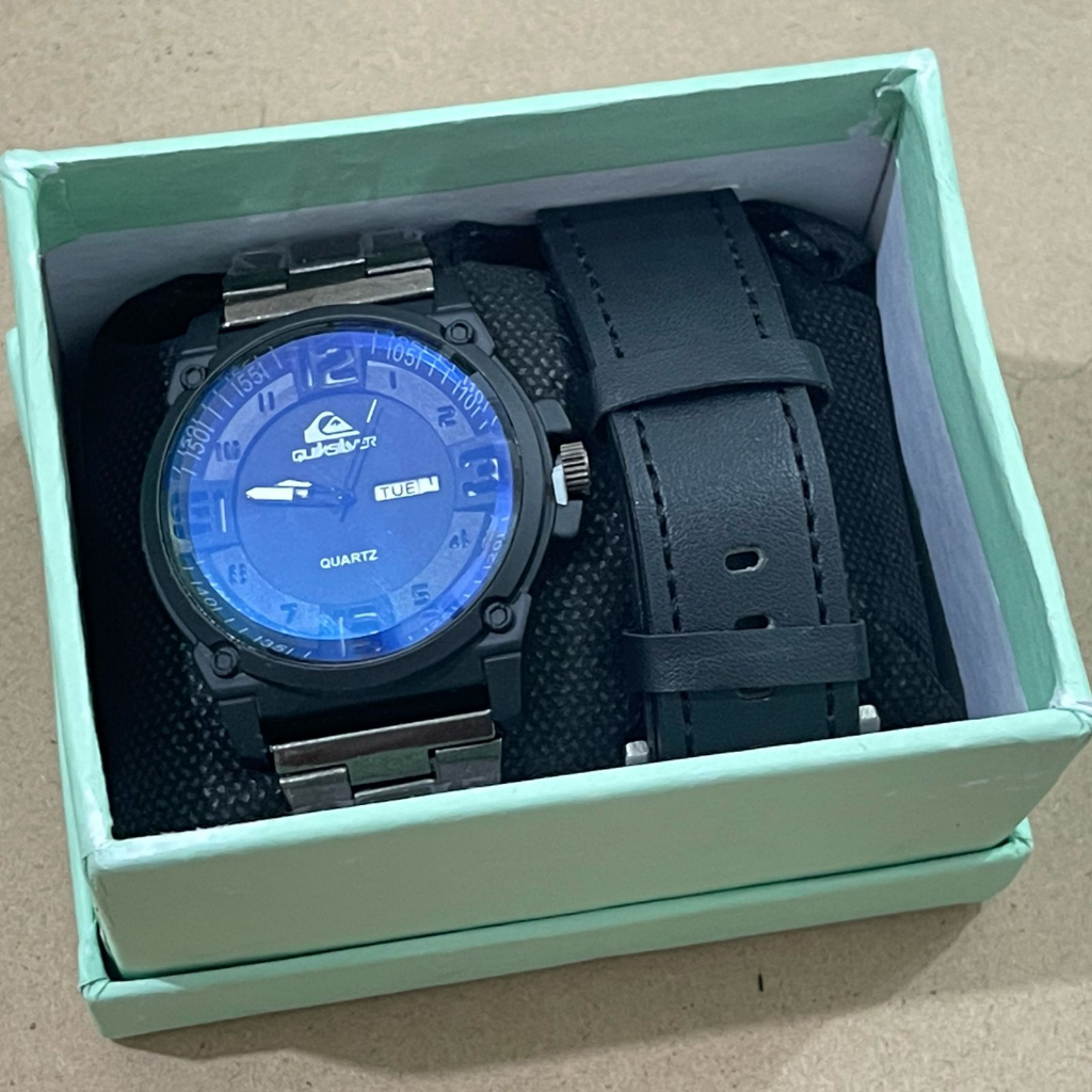 Detail Jam Tangan Quiksilver Set Strap Rantai Tgl Hari Aktif Free Tali Qs-48