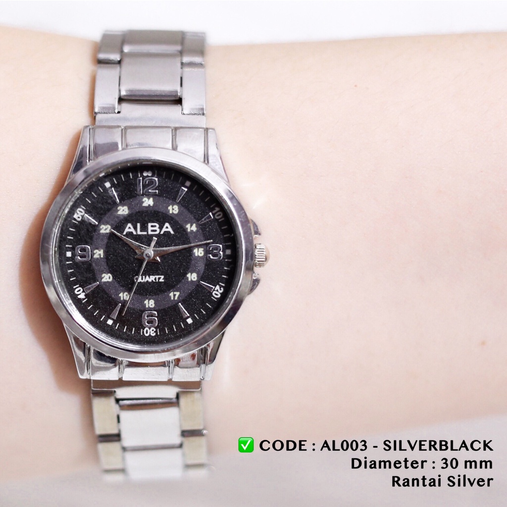 Detail Jam tangan rantai wanita stainless steel aloy free baterai cadangan AL001