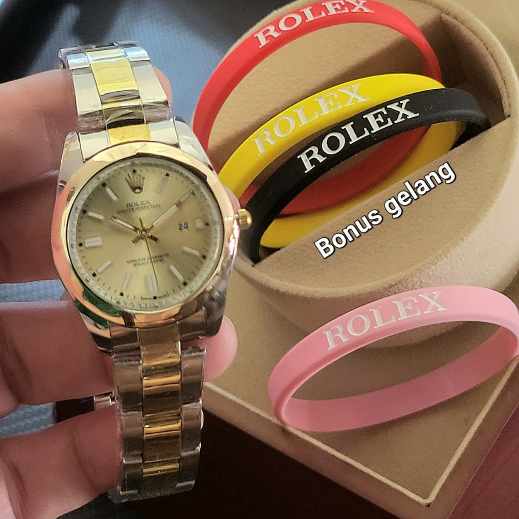 Jam Tangan > Jam Tangan Wanita > Analog > JAM TANGAN ROLEX WANITA D60 TALI RANTAI TANGGAL AKTIF DM 3.2CM FREE BOX GELANG RANDOM & BATERAI || JAM TANGAN FASHION ROLEX WANITA