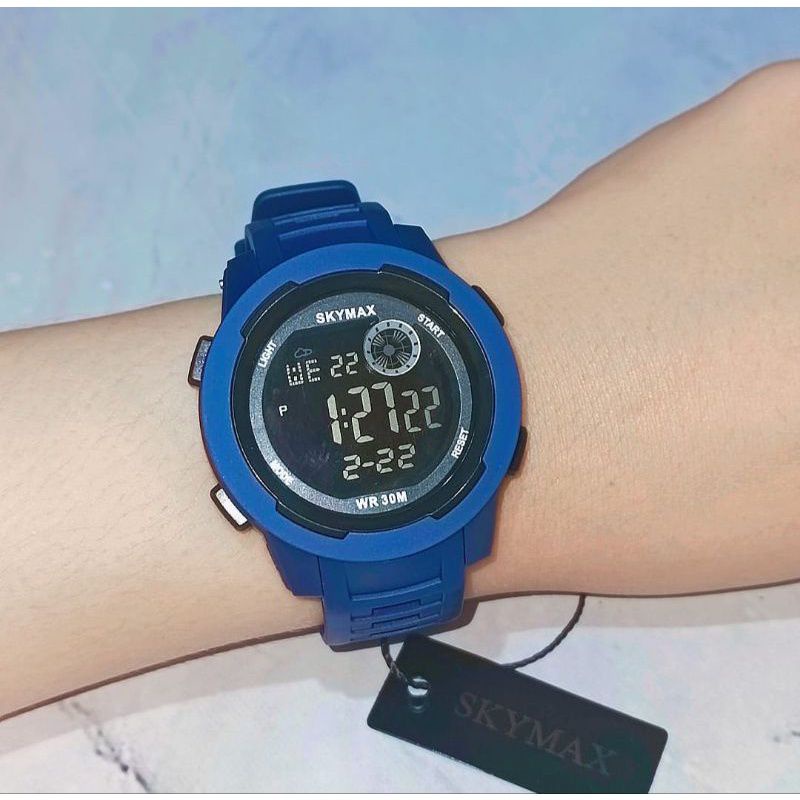 SPESIFIKASI : -Jam Skymax Original -fitur : Jam digital ( jam, menit, detik ) -Stopwatch -Alarm -Backlight led ( lampu ) -Water Resist 3 AMT ( 30 Meter )