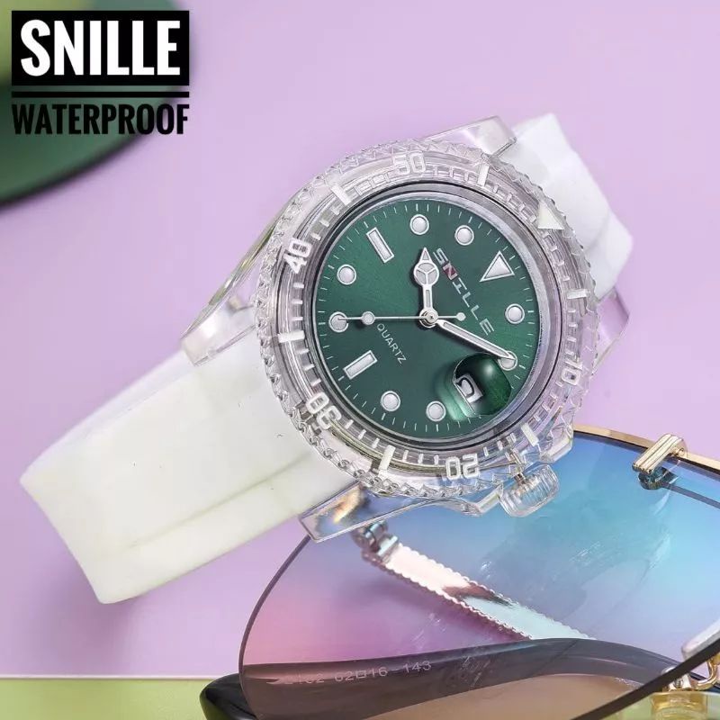 Detail Produk : -Typr : Jam Tangan Pria/wanita (unisex) -Brand : Snille -Display : Analog -Kualitas : Original -Bahan Tali : Rubber -Tanggal : Aktif -Diameter Lingkaran : 4cm -Power : Batrai -Water Resist