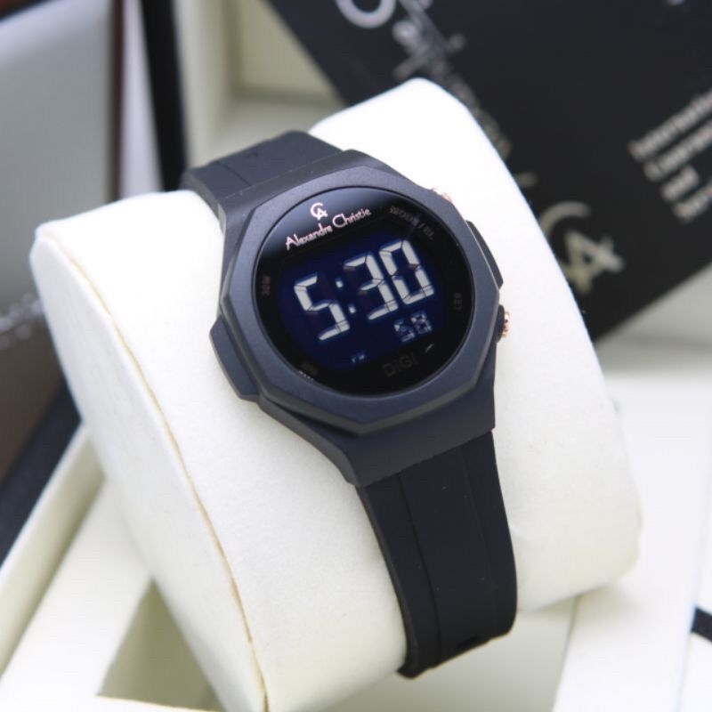 Brand : Alexandre Christie Grade : Original Gender : Women Watch Mesin: Japan Quartz Movement Digital Diameter : 40 mm Rubber Water Resistant