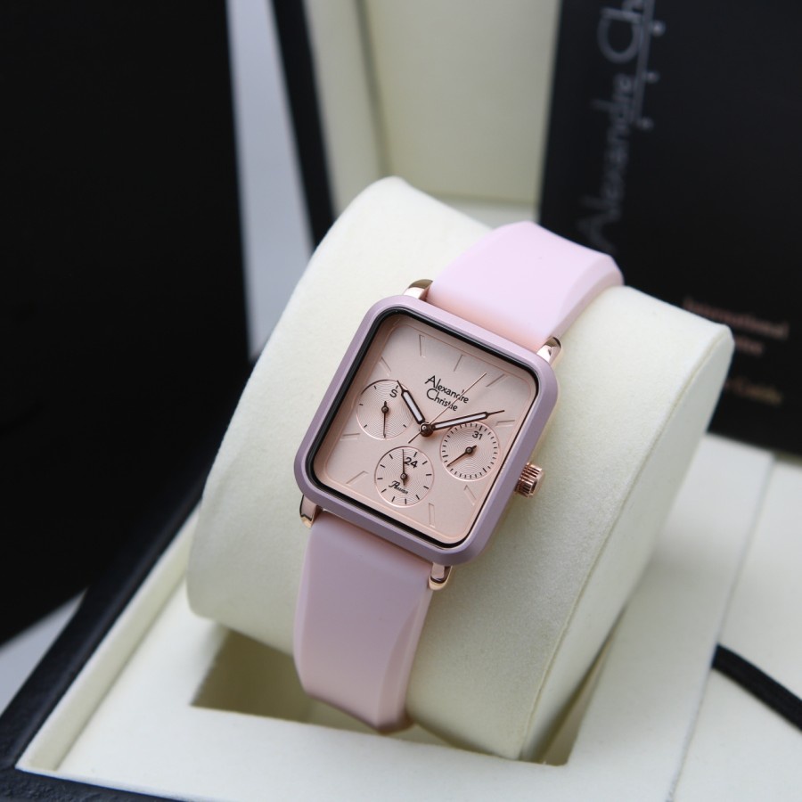 Brand : Alexandre Christie FREE BATERAI ORIGINAL Model number : AC 2A24 Gender : Woman Watch Case Material : Rubber strap Case Diameter : 2.9 cm x 3 cm Movement : Quartz Display Type : Analog Feature : Multifungsi Tanggal, Hari, 24 Jam Water Resistant 3 Atm Original Garansi Resmi