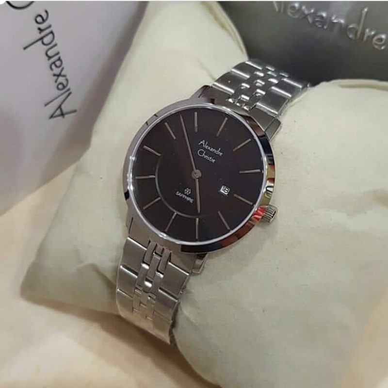Brand : Alexandre Christie Model number : AC8543 Genre : Woman Watch Case Material : All Stainless Steel Case Diameter : 3.3 cm Movement : Quartz Display Type : Analog Feature : Water Resistant 3 ATM Original Garansi Resmi Alexandre Christie 1 Tahun