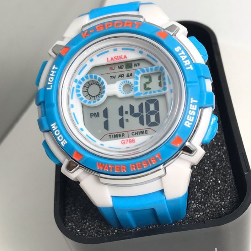 MEREK : LASIKA F-82 ORIGINAL Tali : Karet Warna MESIN : BATERAI FUNGSI : DIGITAL FITUR : ALARM , STOPWATCH , TANGGAL , HARI , BULAN BAHAN : TALI RUBBER DIAMETER : 4CM FREE BOX ORIGINAL WATER RESIST
