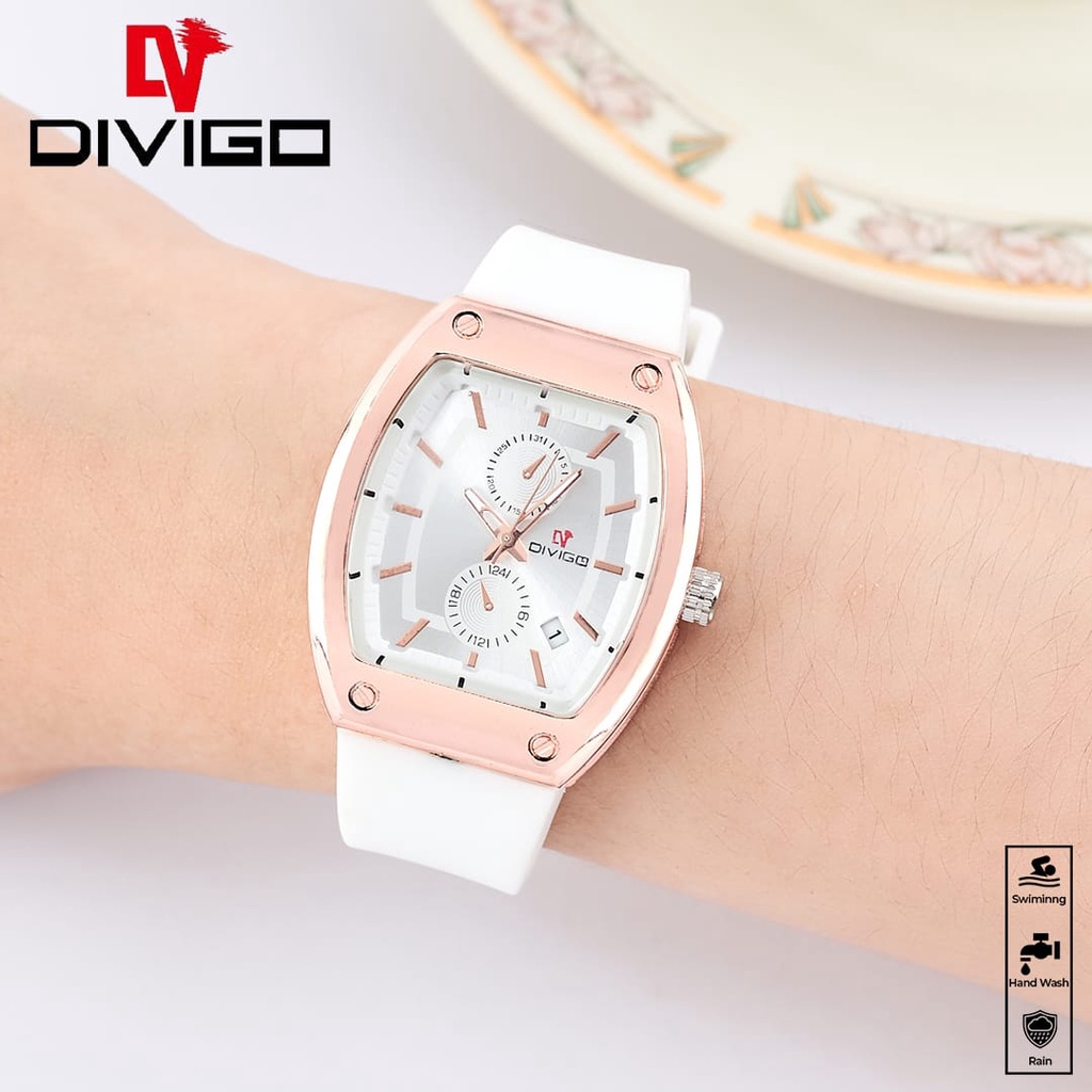 Detail Jam Tangan Wanita Divigo Fashion Oval Strap Rubber Tanggal Aktif / Jam Tangan Korea Wanita Divigo