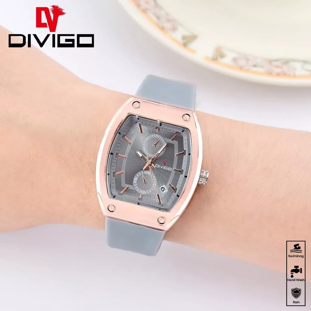 Jam tangan DIVIGO hadir dengan interface penunjuk waktu analog yang unik , stylish and Fashion. Bagian tali terbuat dari bahan Rubber dengan warna yang menarik, menambahkan kesan modis dan elegan di dalam aktivitas sehari-hari.