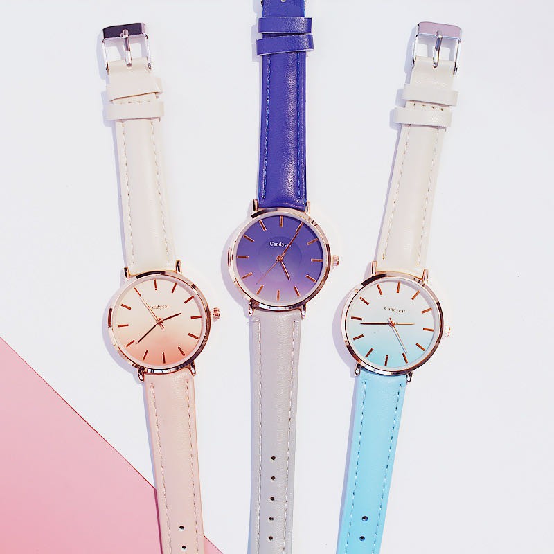 Detail Jam Tangan Wanita Fashion Candy Gradient Color Quartz Women Leather Watch/Jam Tangan Wanita