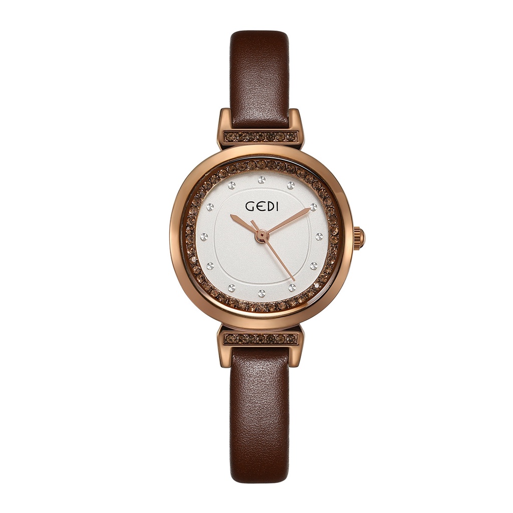 Detail Jam tangan wanita GEDI CRYSTALE dengan tali kulit batu kuarsa asli, harga bagus tren bagus 2022