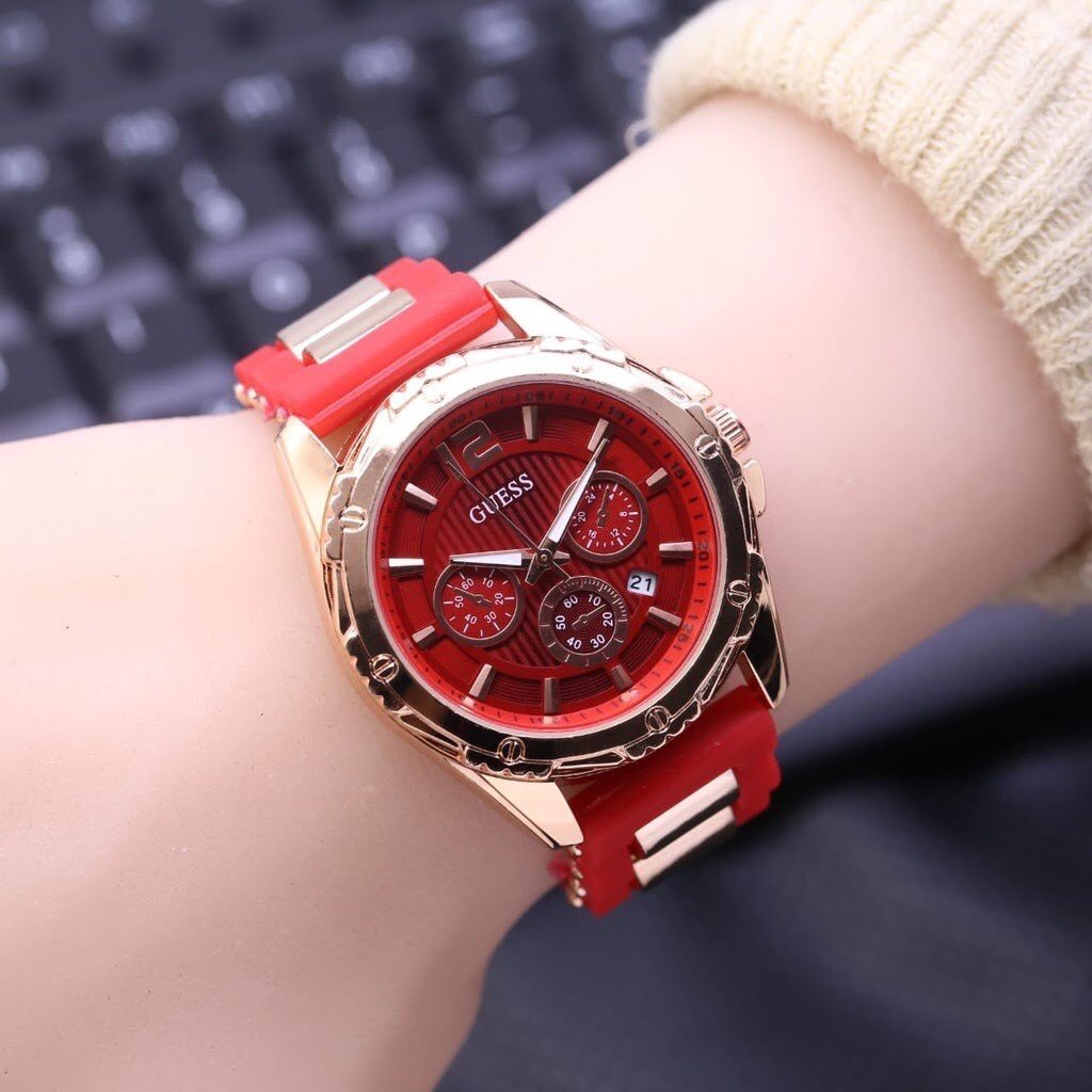 Detail Jam tangan wanita GUESS tali rubber karet fashion TANGGAL AKTIF free baterai cadangan GC001 GC002
