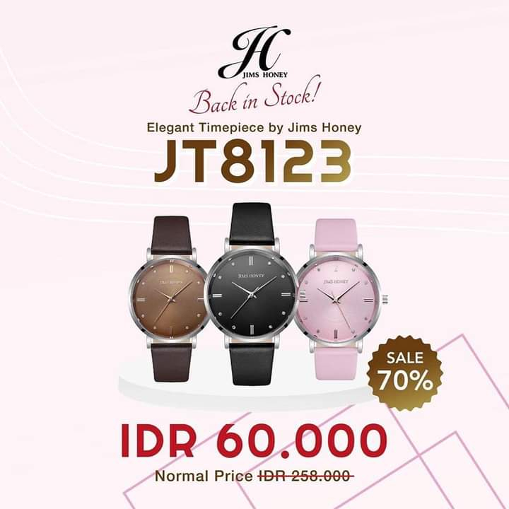 Jam tangan 8123 yang elegan nan menawan, dengan ornamen berlian pada angka jam tangan. Memiliki design yang sleek dan minimalis, cocok untuk #JHLadies yang memiliki jiwa aktif dan dinamis