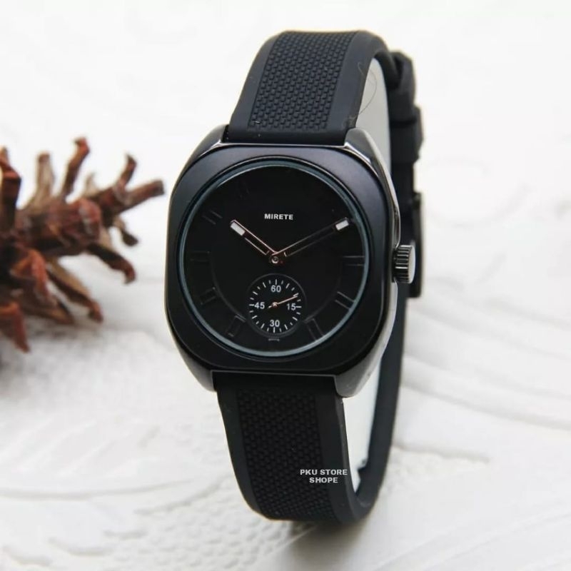 . MEREK : MIRETE ORIGINAL . CASE : Aloi . STRAP : SILIKON/RUBBER . DIAMETER : 3mm . Power : Batrai . Gerakan : Quart . Water Resistant . Free Boubbl Warp . free Batrai Cadangan . Free Box Pkg . Tanpa Biaya Tambahan