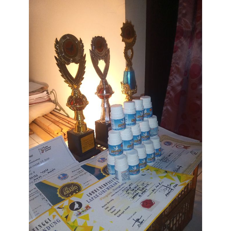 JAMU MERPATI MASTER POWER ISI 100 BUTIR manfaat dan kegunaan 1. Menjadikan burung lebih stabil. 2. tenaga semakin prima. 3. nafas semakin panjang. 4. burung tidak mudah cape. 5. membantu masa pembentukan otot. 6. mendongkrak birahi sehingga burung giring nya ngunci. 7. menjaga daya tahan tubuh sehingga tidak mudah sakit dari serangan cuaca dan penyakit. 8. cepat mengembalikan kondisi burung yg stres kandang / pasangannya mati 9. cepat memulihkan kondisi burung yg cidera akibat turun kencang.