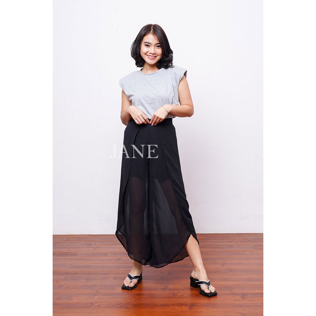 JANE COLLECTION || Celana Panjang Wanita Hitam Bawahan Wanita Bigsize See Through Pants Jumbo Celana Pantai Side Slit Pants Escarpat Pants