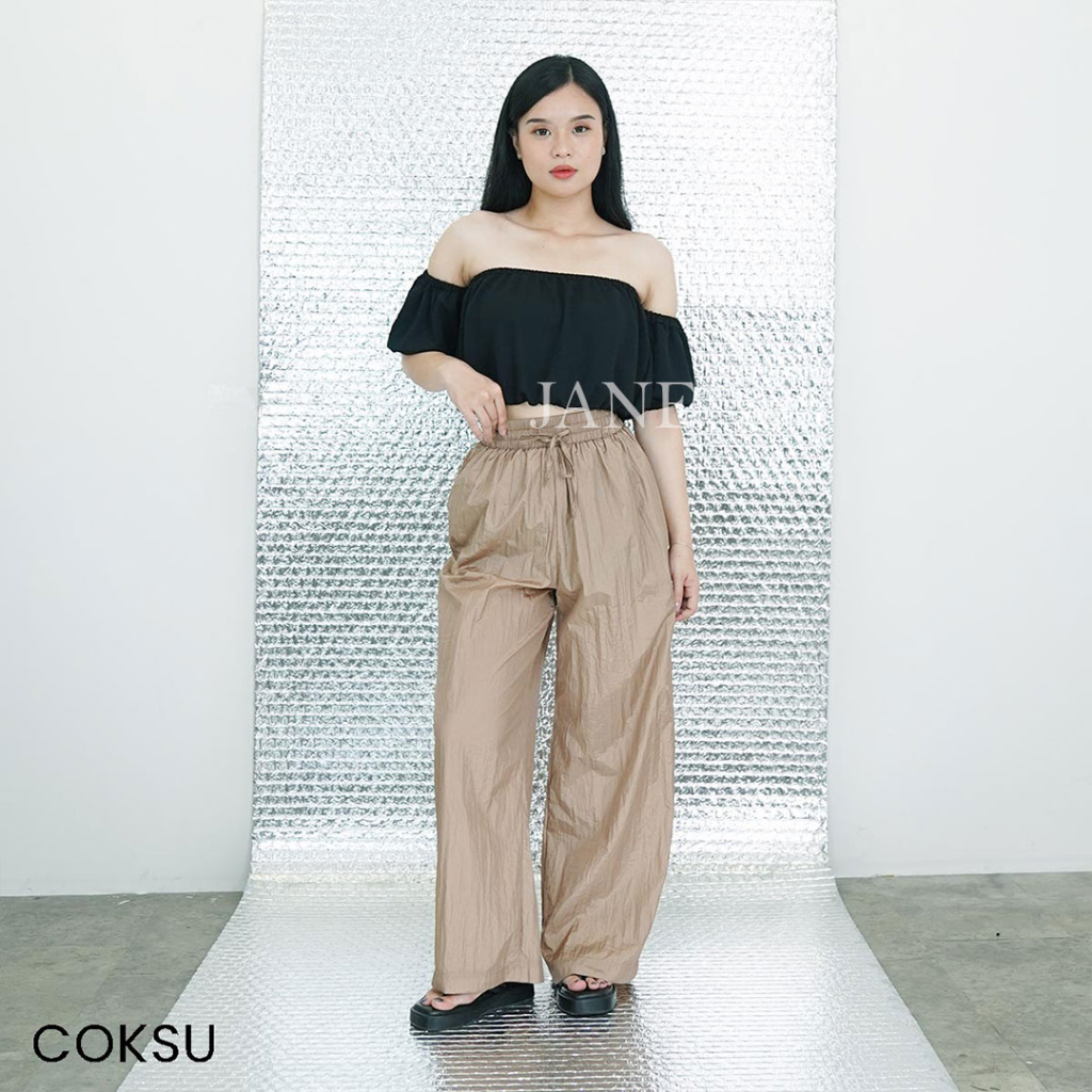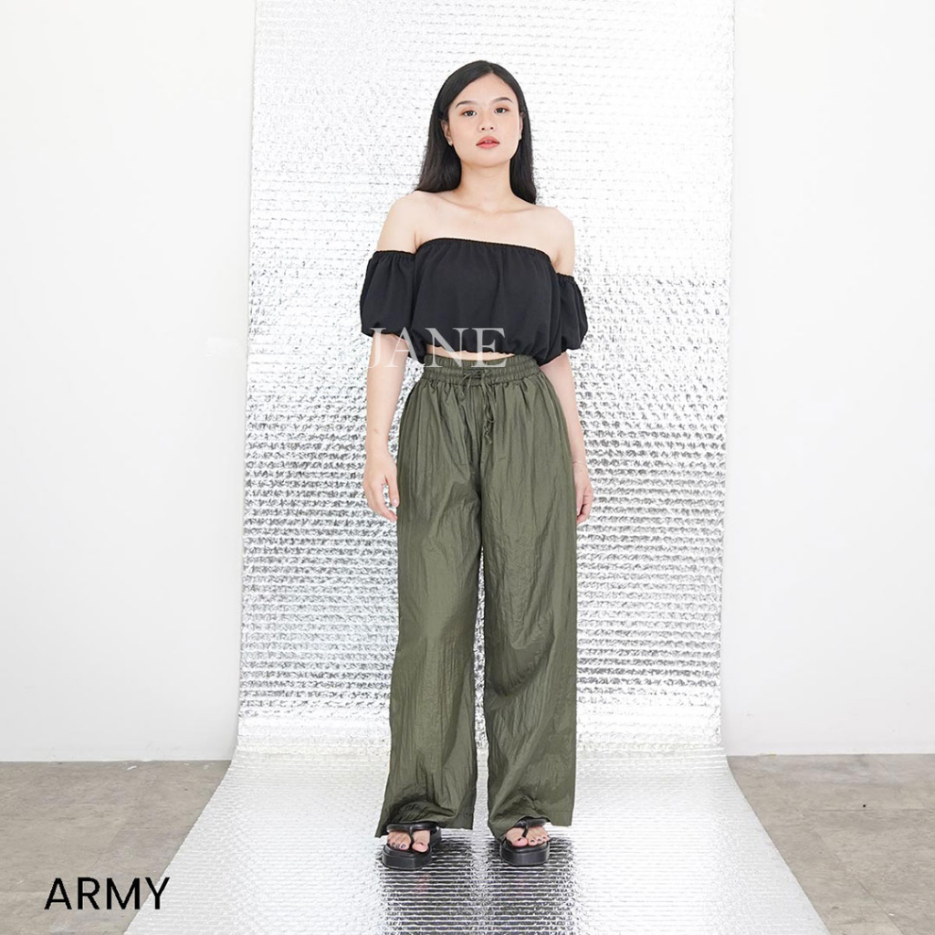 JANE COLLECTION || Celana Panjang Kulot Lebar Bigsize High Waist Crinkle Pinggang Karet PO BKK Celana Santai Hangout Polos Parasut Pants Crila