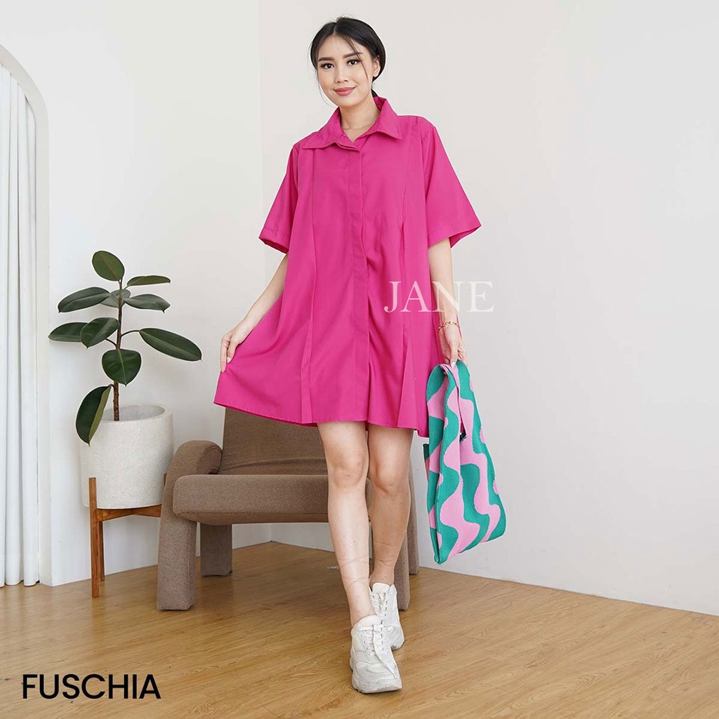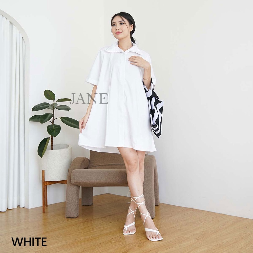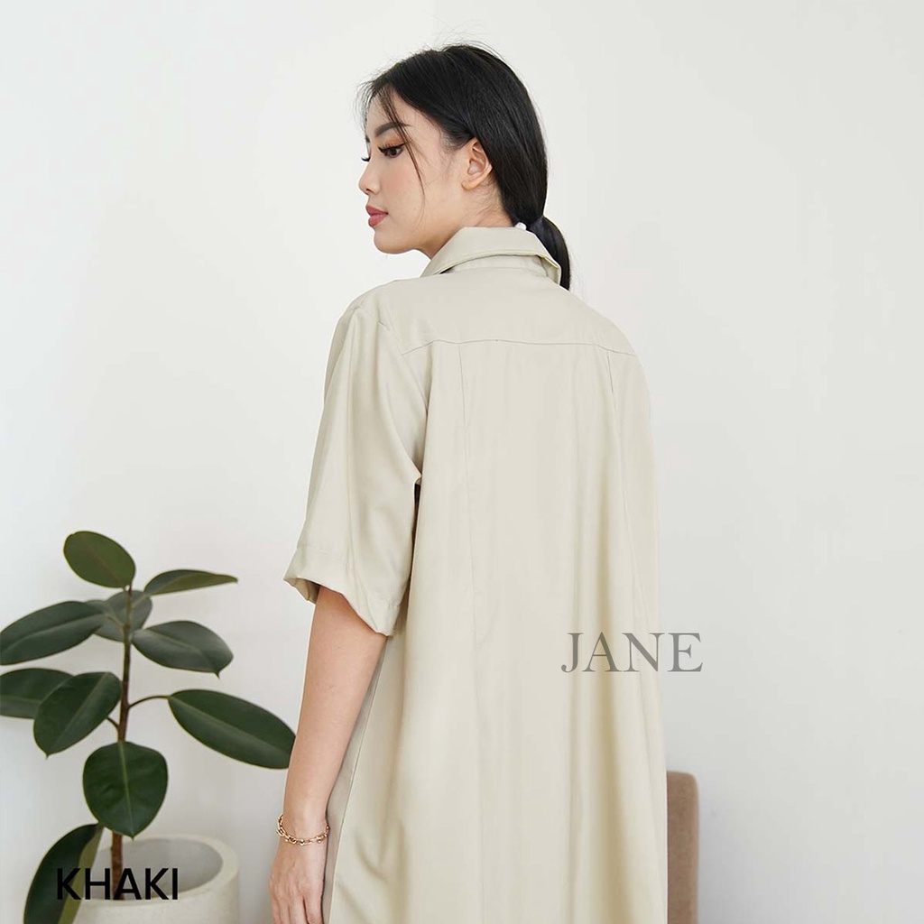 Detail JANE COLLECTION || Dress Oversize Kancing Depan Kemeja Kantor Wanita Basic Cotton Casual Midi Ukuran Bigsize Jumbo Loose Dress Katun Milly