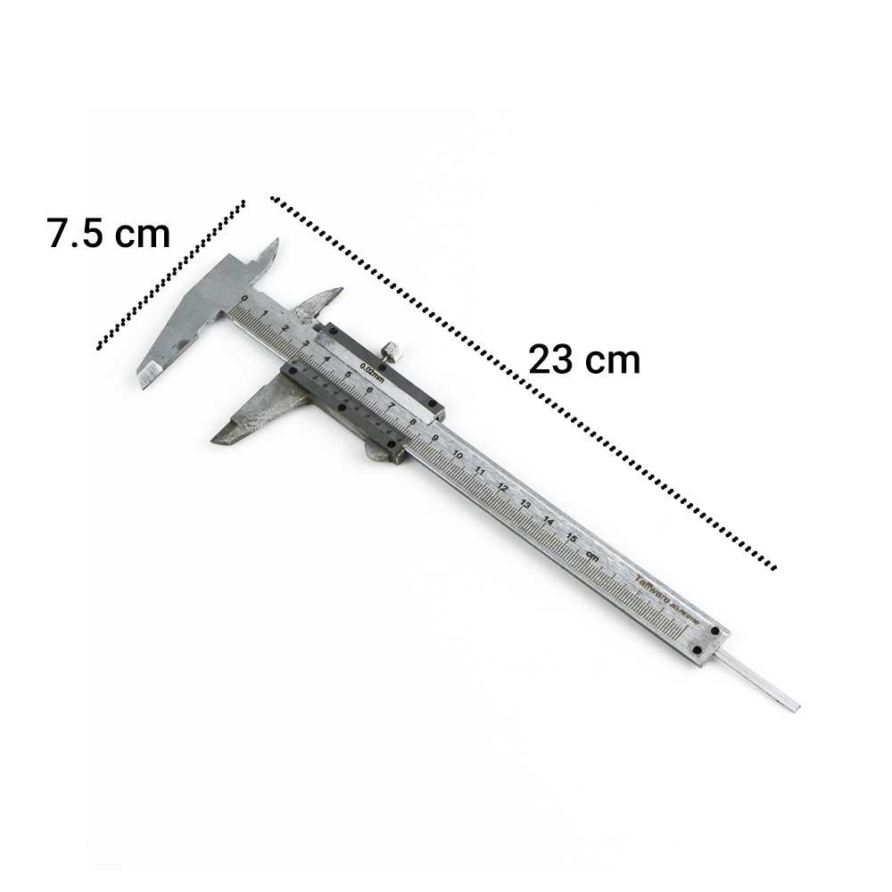 Spesifikasi Tingkat Akurasi Rentang Pengukuran: 150 mm Akurasi/Resolusi: 0.02 mm Material Stainless Steel Dimensi Dimensi Total: 23 x 7.5 cm