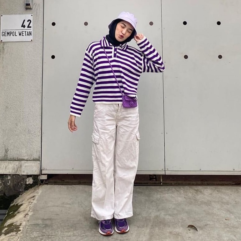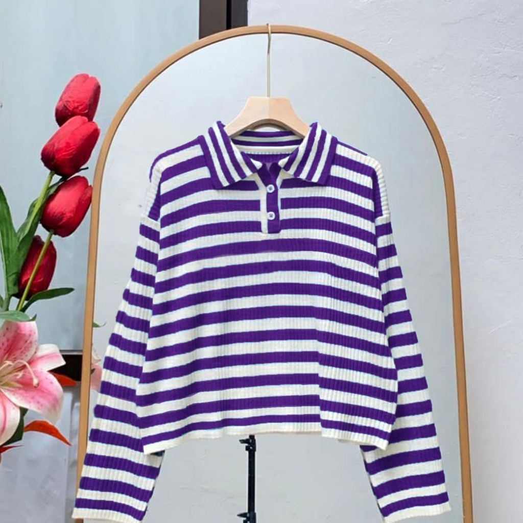 Fashion Muslim > Atasan Muslim Wanita > Kemeja, Blouse, & Dalaman Blouse > Janitra Stripe Knitted -AC