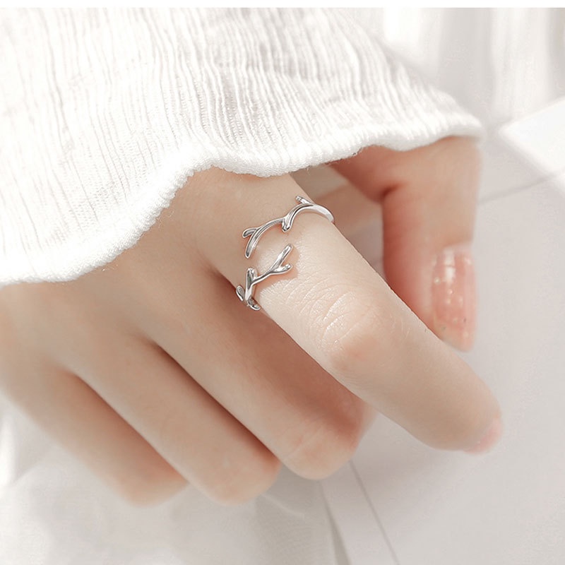 Jari Cincin Fashion Perhiasan Elegan Indah Hadiah Untuk Kekasih Warna Perak Terbuka Dapat Disesuaikan Cincin Pesta Wanita Gadis Tanduk Rusa Cincin Ulang Tahun Sederhana Cabang Daun Cincin Tipis Trendi