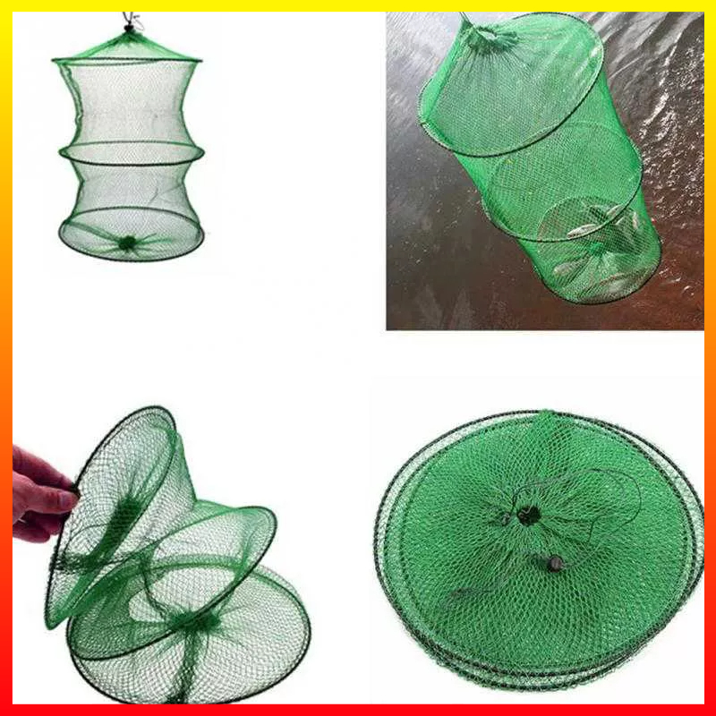 Jaring pancing ini biasa digunakan untuk menyimpan ikan atau udang hasil pancingan. Mudah digunakan hanya dengan menarik tali maka jaring akan terbuka dan dapat langsung digunakan. Jaring ini terbuat dari material nilon yang kuat sehingga dapat menampung beban yang berat ketika Anda membawa hasil memancing.
