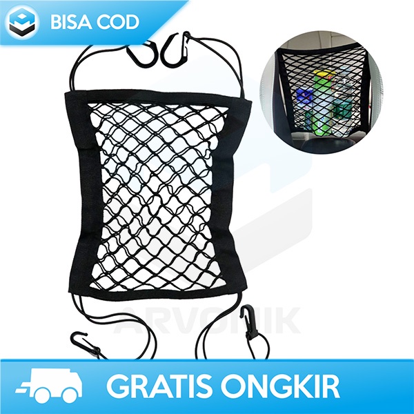 Jaring-jaring ini dapat digunakan untuk menaruh barang seperti botol minum, snack, gadget dan barang lainnya. Net organizer ini diletakkan diantara kursi mobil depan sehingga lebih mudah untuk dijangkau.