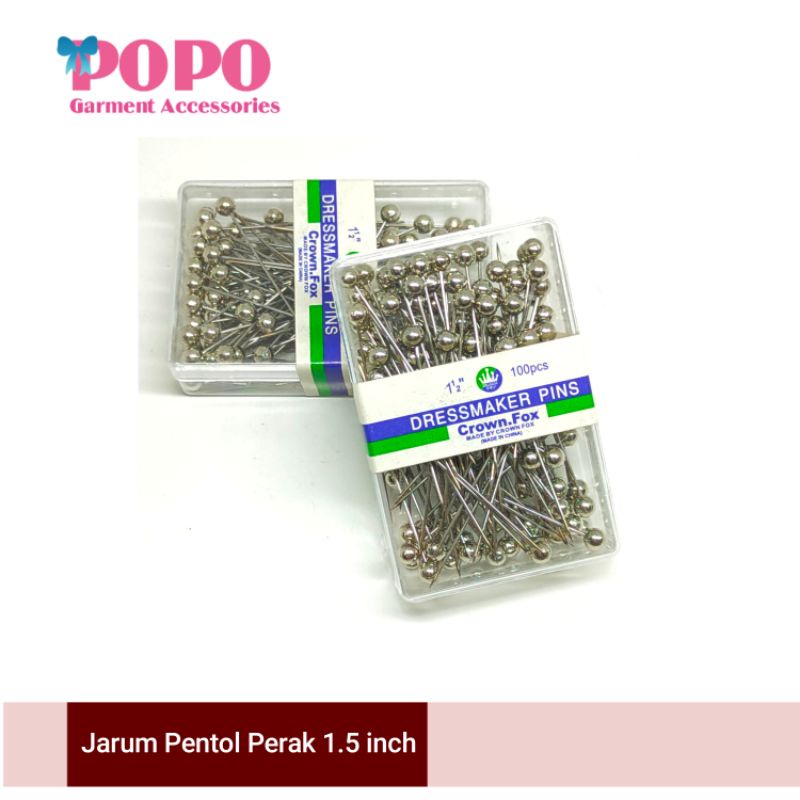Jarum pentol warna perak ukuran 1.5 inch.