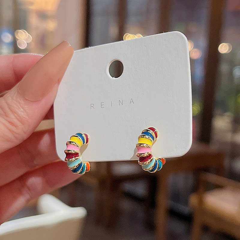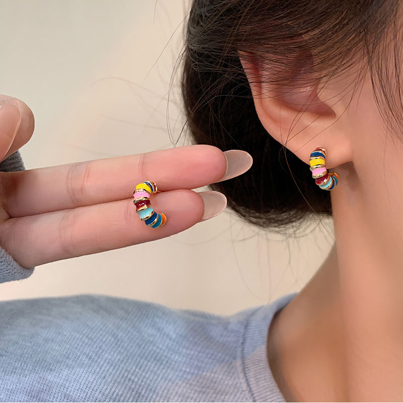 Detail Jarum Perak925 Enamel Warna-Warni Anting Wanita Fashion Warna Kontras Ear studs