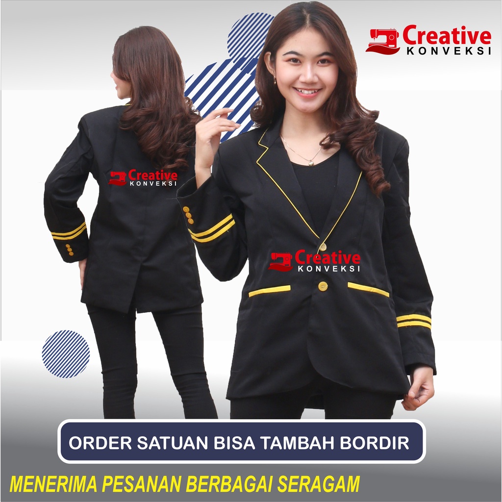 Detail Jas Almamater | Full puring HITAM LIS KUNING | Jas Mahasiswa Bisa tambah bordir Blazer Pria Wanita