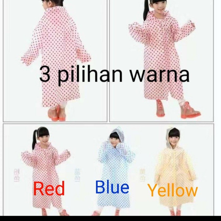 Barang sesuai gambar, real pic !!! - bahan kuat - model terusan/ ponco & setelan - tas mantel - kantong/saku Varian warna : Kuning, Merah, Biru Ukuran panjang jas -+ 83 cm Lebar dada -+ 54 cm Panjang lengan -+ 40 cm Berat : 100gram bisa untuk anak dengan tinggi badan 120 - 160 cm
