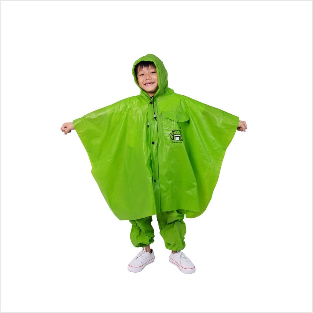 Spesifikasi produk : - Pada pergelangan kaki dan tangan ada karetnya. - Dilengkapi tali leher yang mencegah air hujan masuk - Terdapat saku dengan gambar sablon animal lucu dibagian dada.