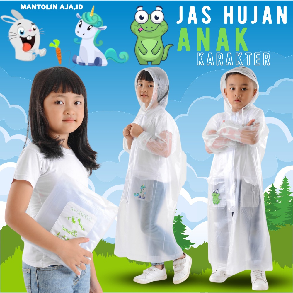 Detail Jas Hujan Anak Terusan Umur 3 sampai 8 Tahun Ponco Bening Mantel Bromo Melon Coat Karakter