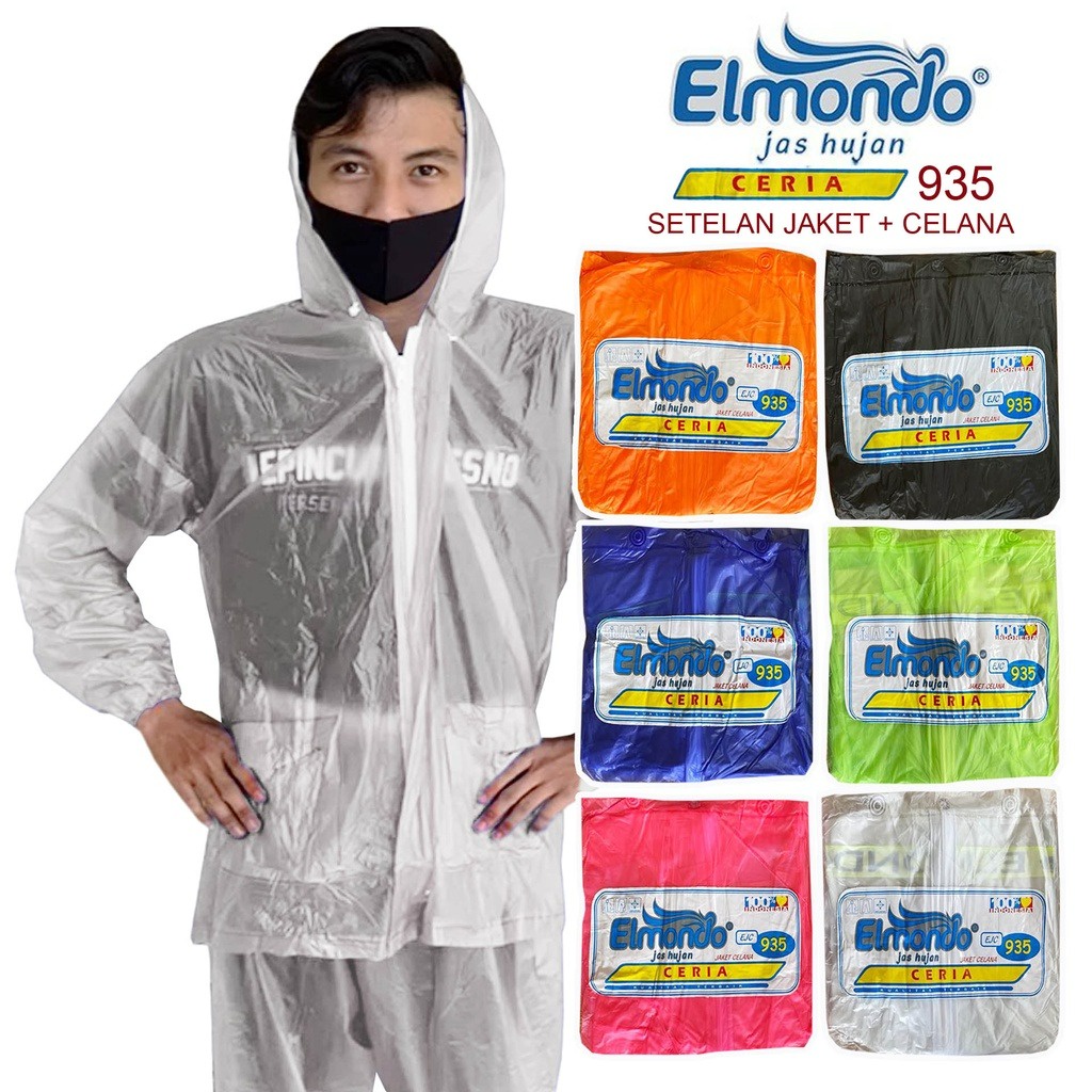 Detail Jas Hujan Dewasa Elmondo Setelan Jaket Celana Raincoat Murah Pria Wanita
