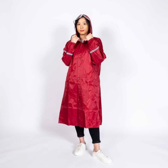 Detail : Jas hujan multi fungsi yang direkatkan dengan reseleting dan kancing. Apabila jas hujan direkatkan reseleting dan kancingnya, maka jas hujan akan berbentuk ramping lurus kebawah. Apabila kancing jas hujan dibuka, dan hanya direkatkan dengan reseleting, maka jas hujan akan tampil lebih lebar dan memudahkan pengguna untuk dipakai mengendarai motor.