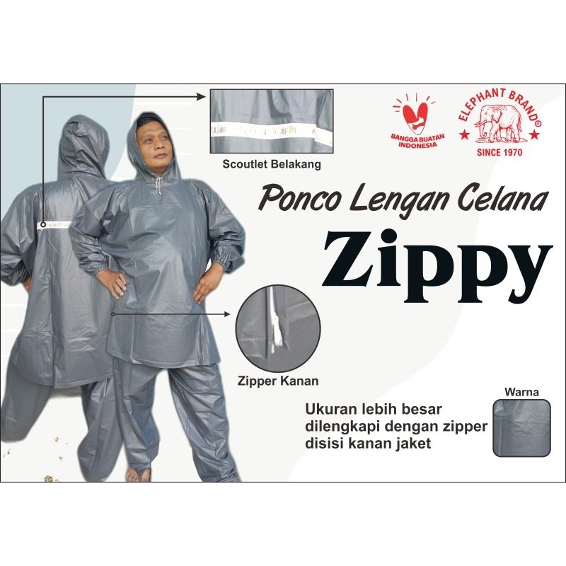 Detail jas hujan dewasa ZIPPY Elephant brand (gajah) termurah terlaris