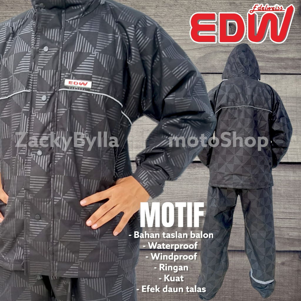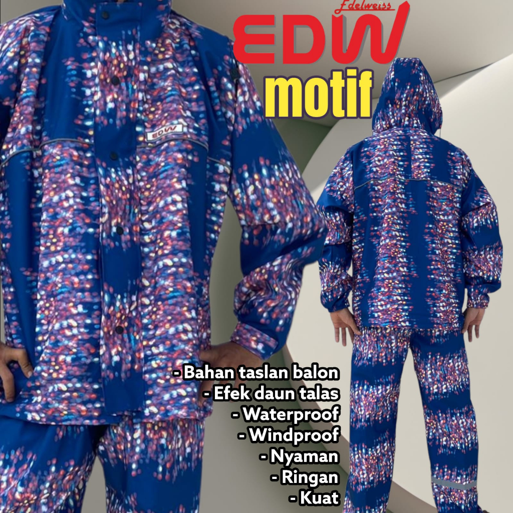Detail Jas Hujan EDW Edelweiss Motif Original Setelan Jaket dan Celana