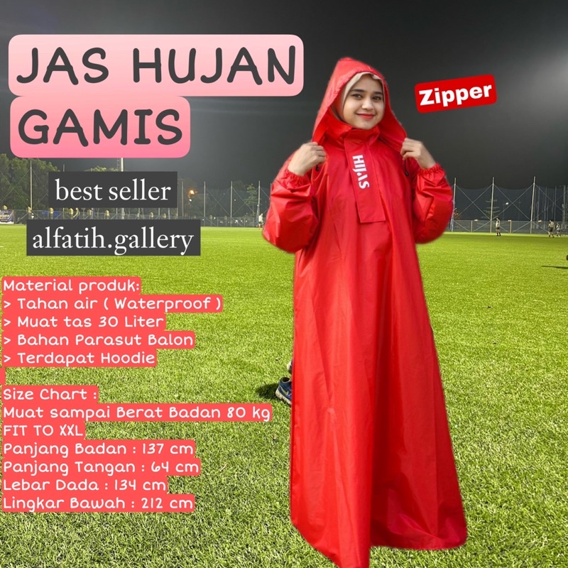 Detail Jas Hujan gamis hijab | Jas Hujan zipper | Jas hujan muslimah best seller alfatih